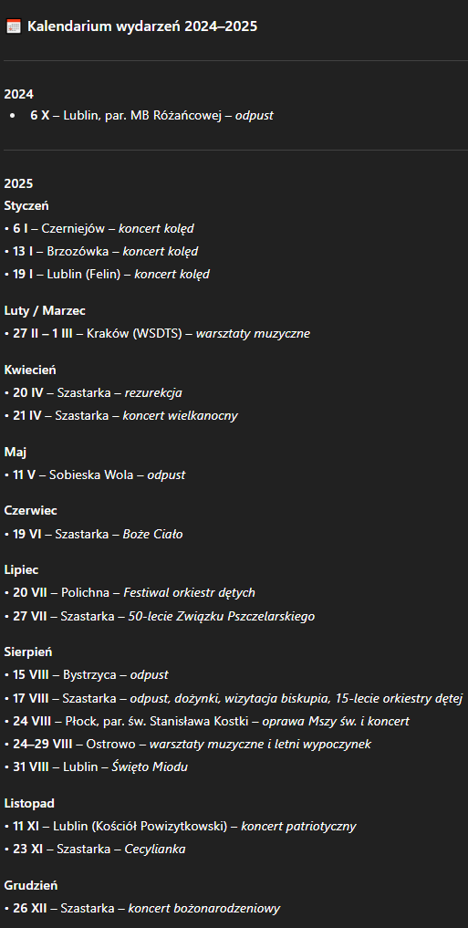 Kalendarium koncertów i występów 2025 rok.